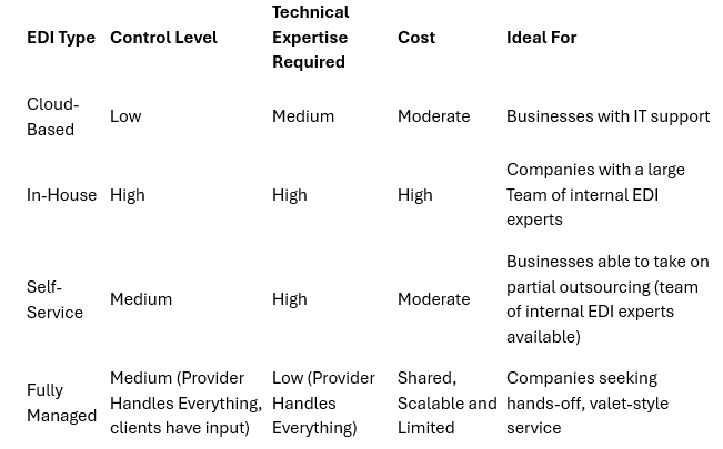 Comparison Table of Different EDI Types